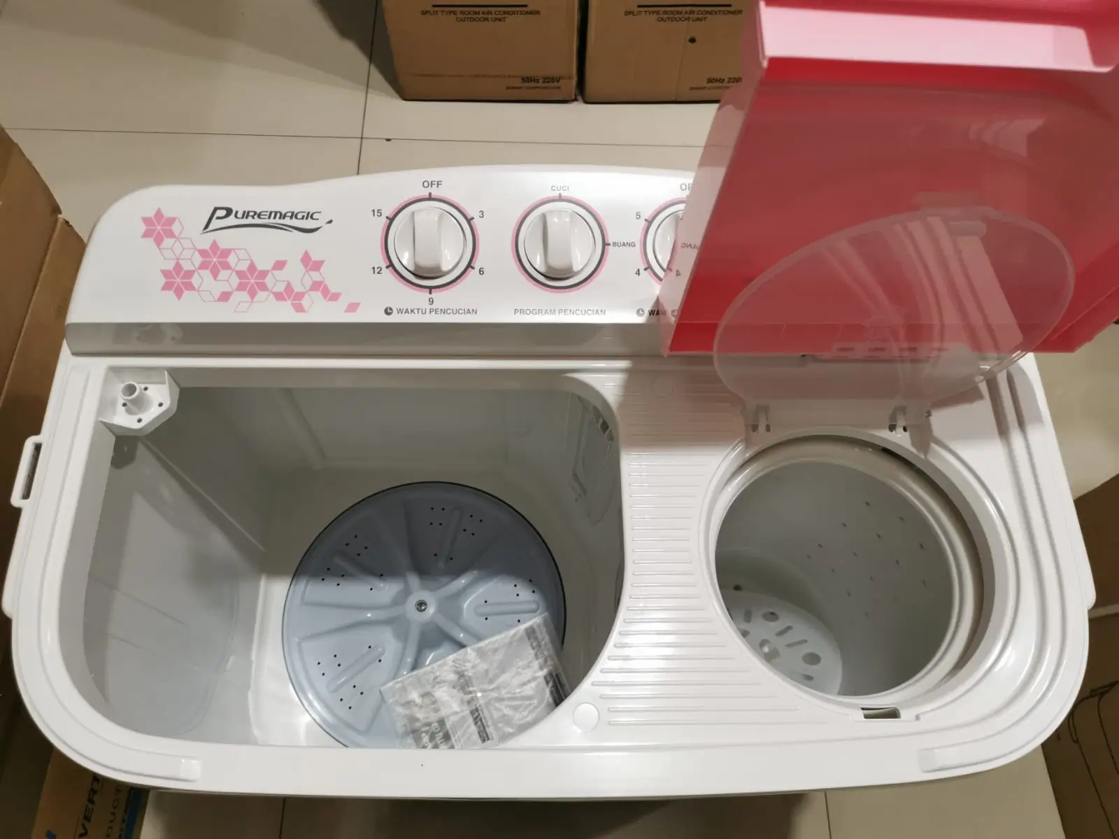 - Konsumsi daya efisien untuk kategori twin tub.