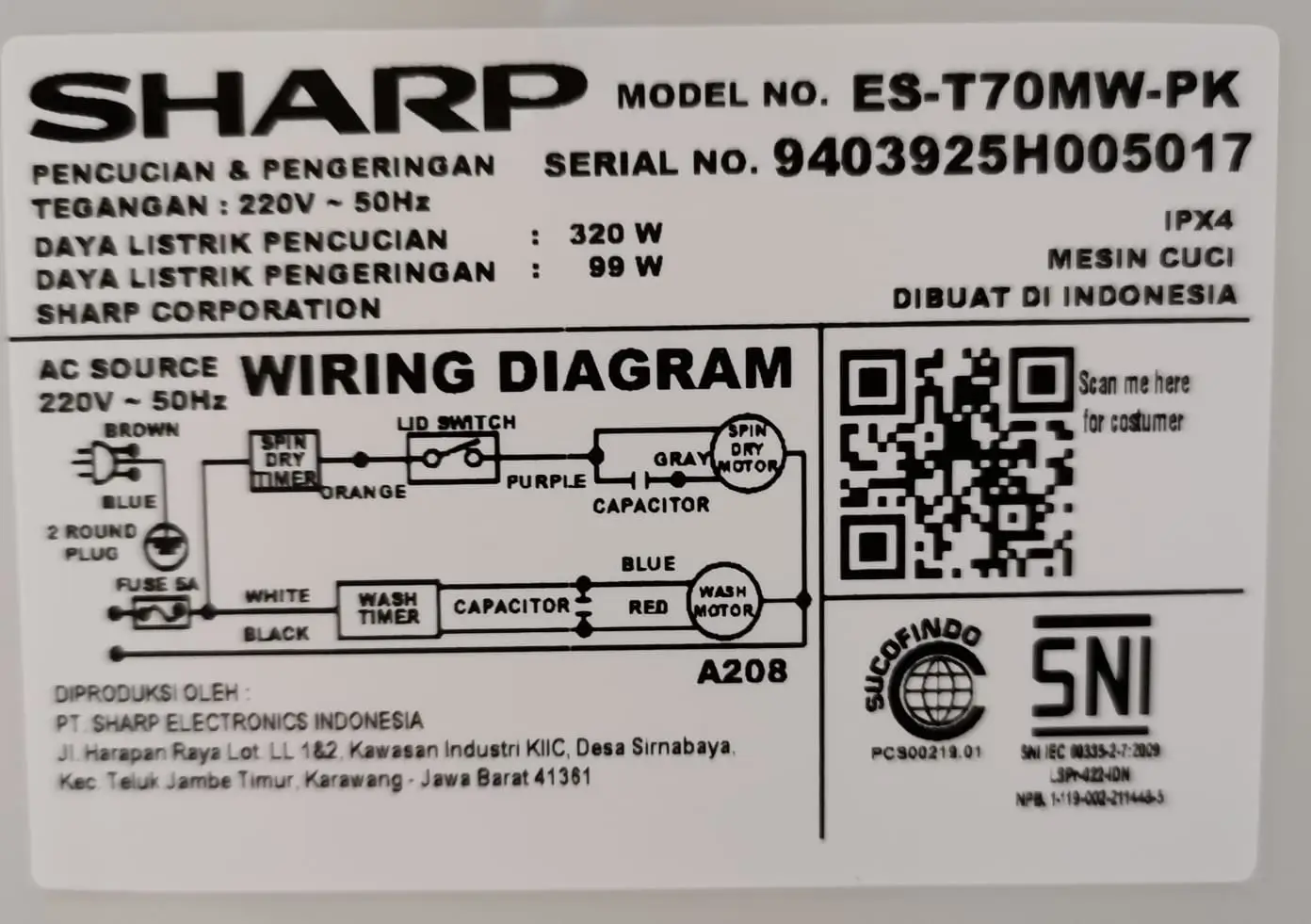 - Panduan pengguna & materi teknis Sharp (umum) untuk rangkaian mesin cuci 2 tabung.