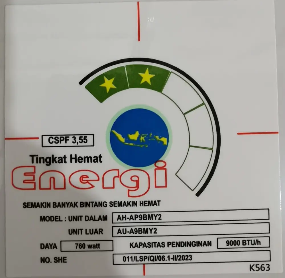 - Kapasitas: 1 PK (BTU/h: 9000)