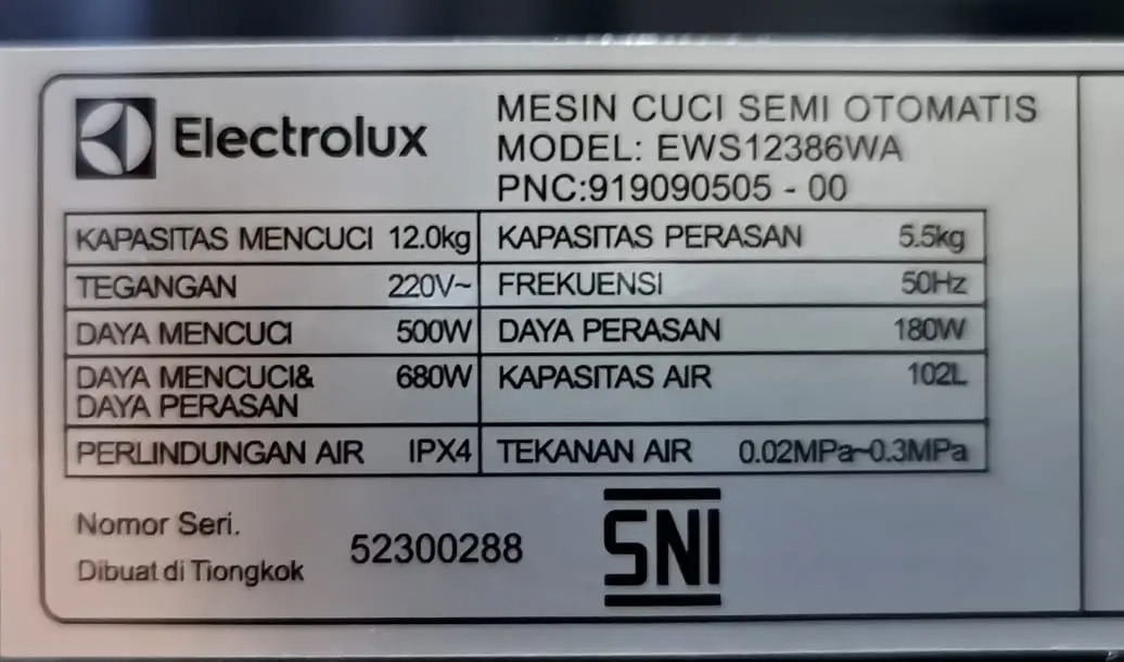 Tergantung durasi/program. Daya tertera 500W (cuci) dan 180W (spin). Pilih program sesuai kebutuhan agar efisien. - Apakah cocok untuk wilayah Bogor, Cibinong, Depok?