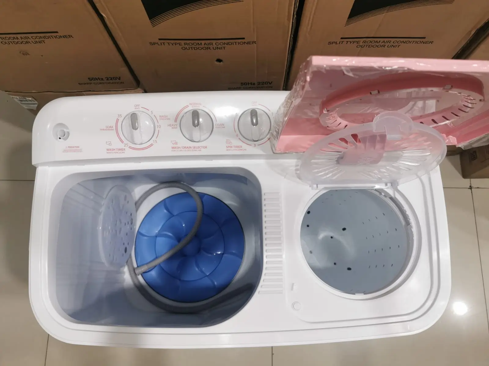 Karena desain tabung pengering memang sering lebih kecil. Ini normal pada banyak mesin cuci 2 tabung agar proses spin stabil dan hasil lebih optimal. - Apa keunggulan RPM 1.280 pada tabung pengering?