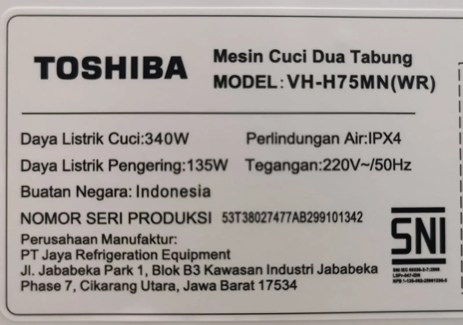 Toshiba VH-H75MN adalah mesin cuci 2 tabung dengan kapasitas cuci 6,5 kg yang dirancang untuk kebutuhan mencuci rutin dengan kontrol manual yang sederhana. Model 2 tabung umumnya dipilih karena proses cuci dan spin (pengering) bisa diatur terpisah, relatif mudah perawatan, dan cocok untuk area dengan tekanan air yang tidak selalu stabil—situasi yang cukup umum di beberapa titik Bogor, Depok, atau pinggiran Cibinong.