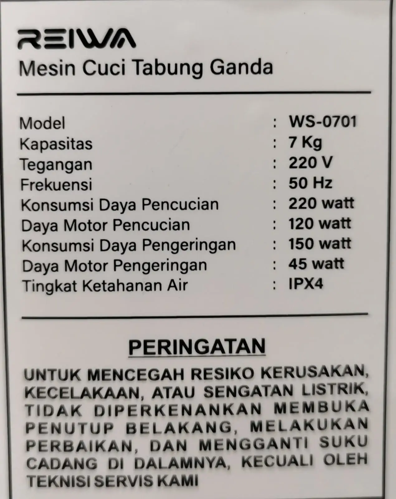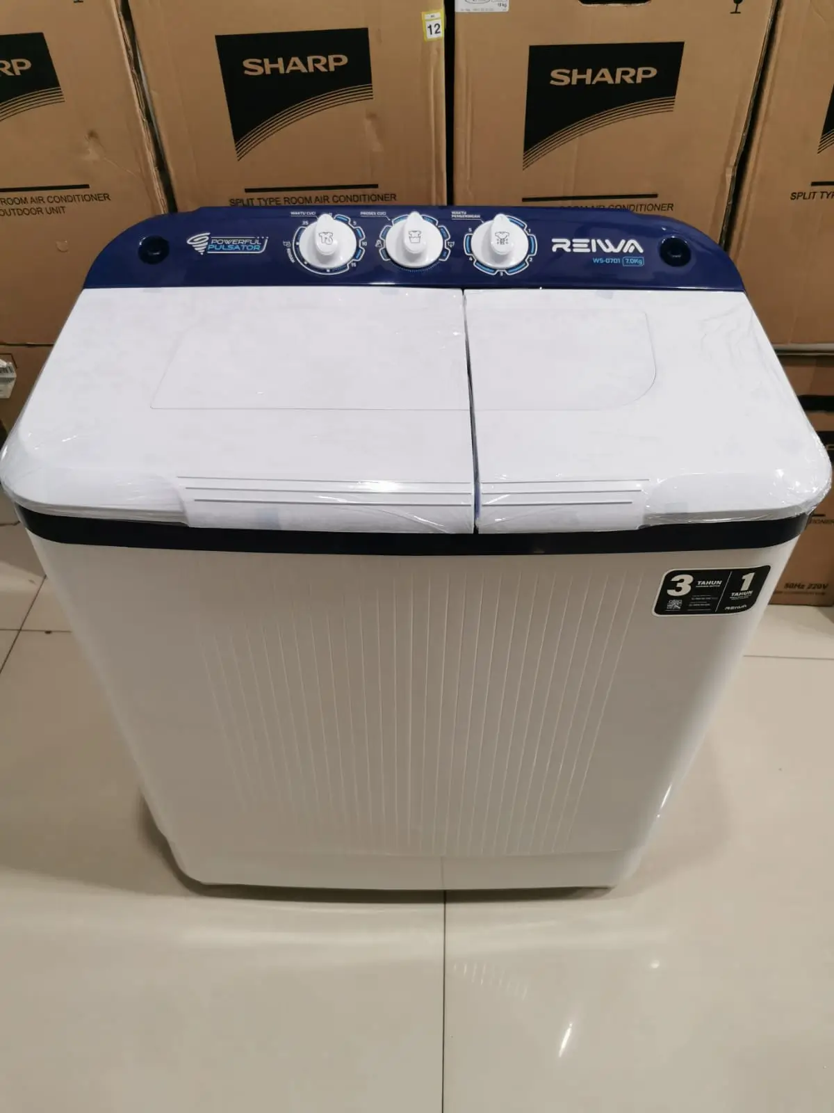 Dengan penggunaan dan perawatan yang benar, mesin cuci 2 tabung umumnya dapat bertahan bertahun-tahun. Garansi motor 3 tahun pada Reiwa WS-0701RLBL menunjukkan komitmen produsen terhadap daya tahan produknya.