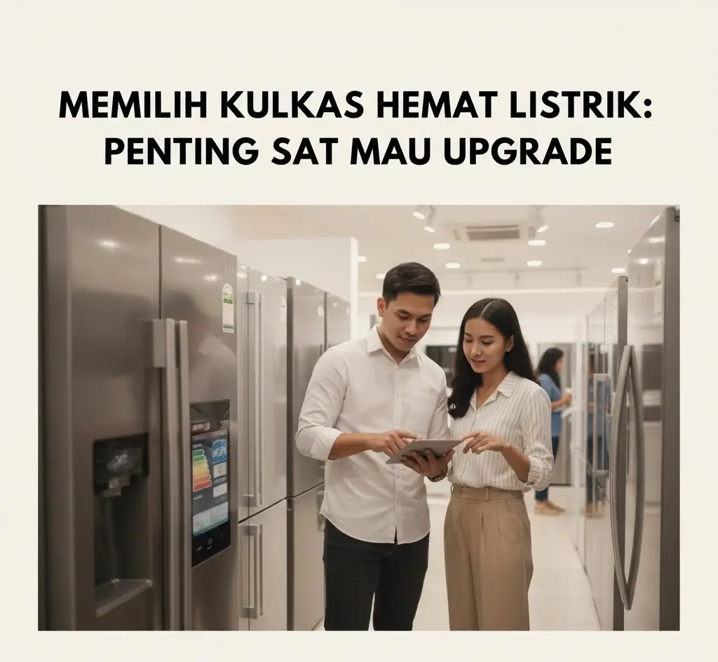 - Keluarga besar (4+ orang): kulkas 2 pintu / 3 pintu, tapi pilih yang hemat energi