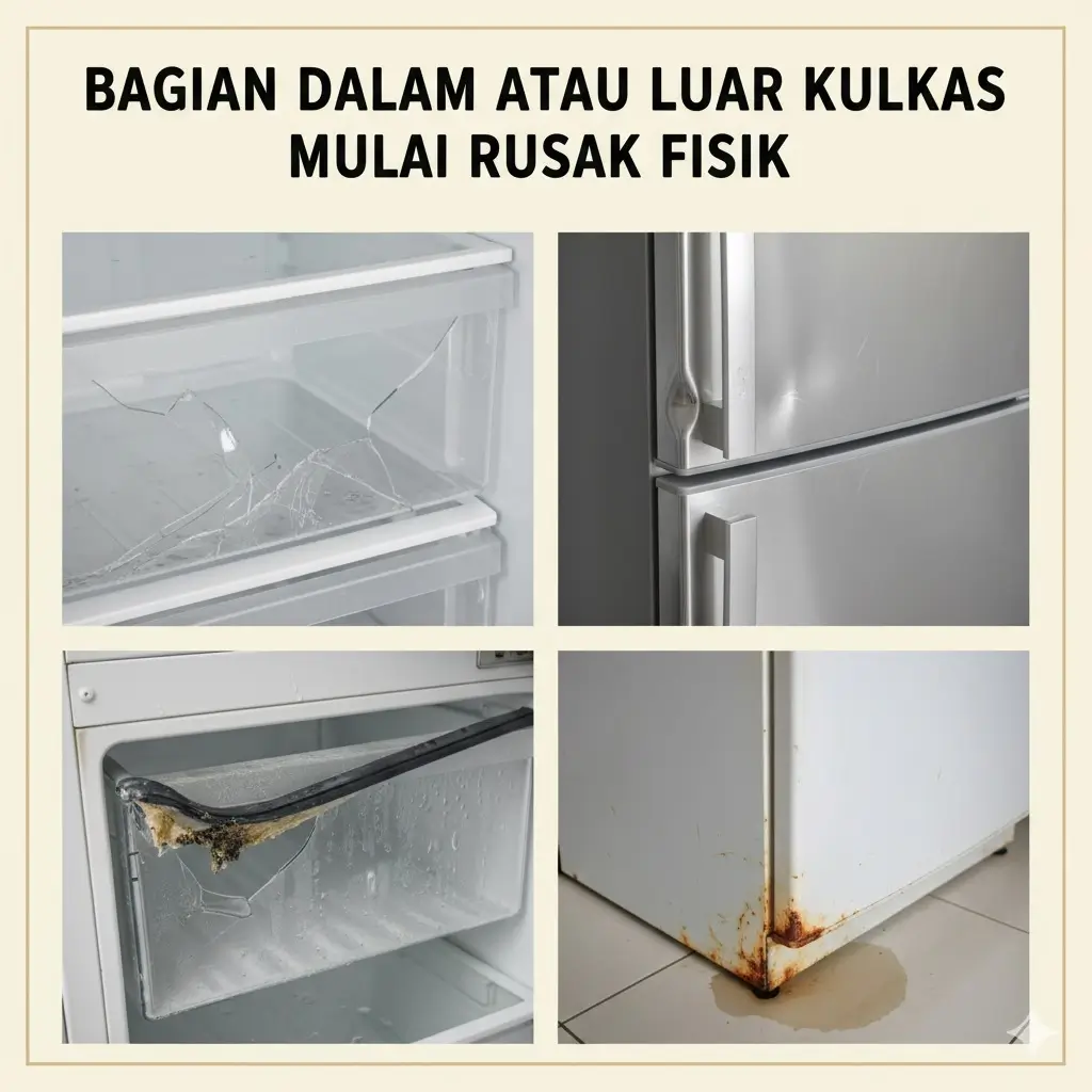 Seiring waktu, kerusakan fisik bisa memengaruhi kinerja kulkas dan keamanan penggunaan.