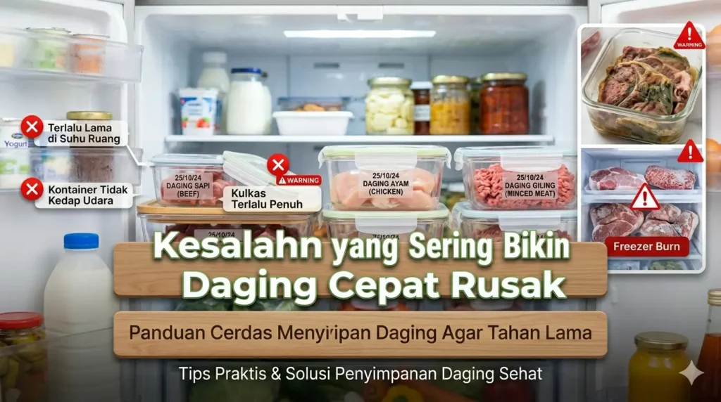 Cara Menyimpan Daging di Kulkas Agar Tidak Cepat Busuk – Pernah beli daging banyak sekaligus karena harga lagi bagus di pasar Bogor, Cibinong, atau Depok, lalu dua hari kemudian aromanya mulai berubah? Kejadian seperti ini sangat umum. Masalahnya biasanya bukan pada dagingnya saja, tetapi pada cara menyimpan daging di kulkas agar tidak cepat busuk. Banyak orang masih menaruh daging begitu saja di rak kulkas, tanpa memikirkan suhu, wadah, atau posisi penyimpanannya.