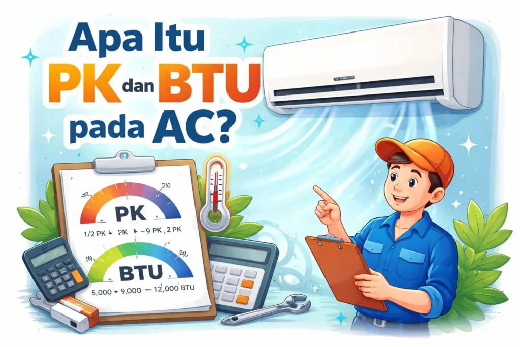 Sementara itu, BTU/h (British Thermal Unit per Hour) adalah satuan yang lebih teknis dan digunakan untuk mengukur kemampuan aktual sebuah AC dalam menyerap panas dari ruangan dalam waktu satu jam. Nilai BTU inilah yang sebenarnya menjadi patokan utama dalam memilih kapasitas AC yang tepat — bukan sekadar angka PK di brosur.