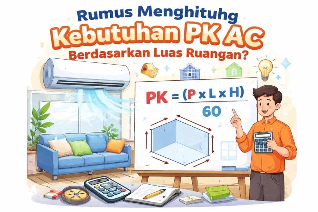 Di tahun 2026 ini, pilihan AC semakin beragam: mulai dari ½ PK hingga 2,5 PK, dengan teknologi standard, low watt, hingga inverter. Tapi semua kecanggihan itu tidak akan terasa manfaatnya kalau kapasitas pendinginan tidak sesuai dengan luas ruangan yang dimiliki. Artikel ini akan membahas tuntas cara menghitung kebutuhan PK AC secara akurat, lengkap dengan rumus BTU, tabel panduan cepat, faktor-faktor yang sering diabaikan, serta tips praktis agar pembelian AC Anda tidak menjadi keputusan yang disesali.