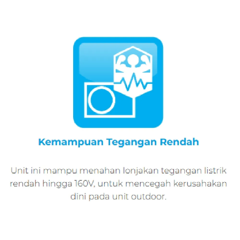– AC non inverter menggunakan technology refrigeran R-32. Technology ini memiliki daya efesiensi listrik yang jauh lebih hemat dibanding dengan AC split lain