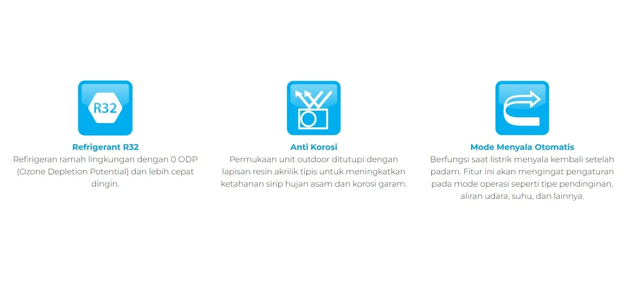 – Dimensi (Indoor/ Outdoor) 29 x 77 x 22 cm/ 60 x 85 x 30 cm