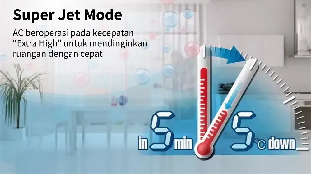 AC Beroperasi pada kecepatan Extra High untuk mendinginkan ruangan dengan cepat.