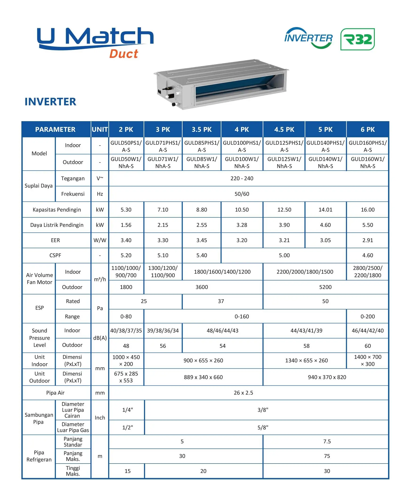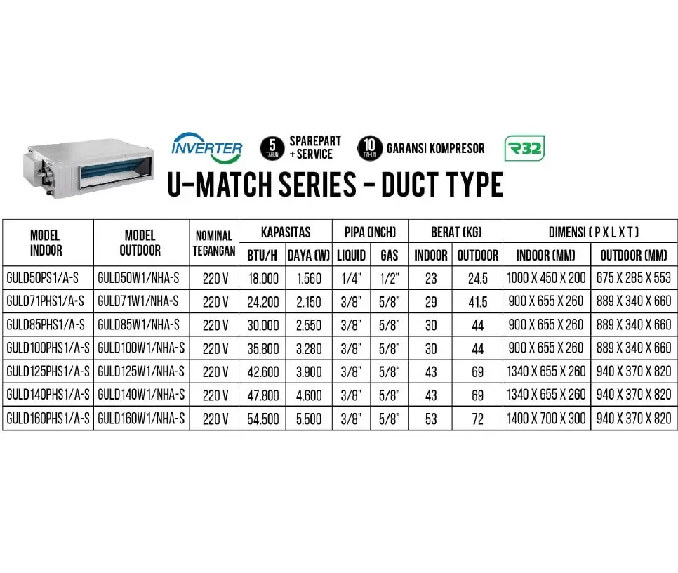 – Jenis : AC Ceilling Ducted U-Match Series Inverter