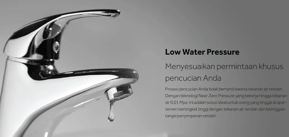 – Low Water Pressure, Dapat beroperasi pada tekanan air yang rendah