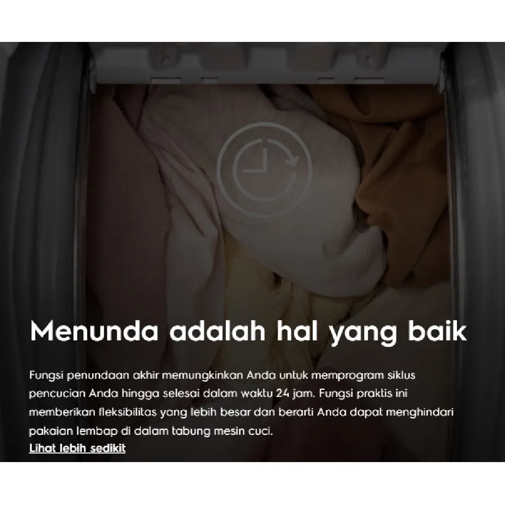 – Fungsi penundaan akhir memungkinkan Anda untuk memprogram siklus pencucian Anda hingga selesai dalam waktu 24 jam
