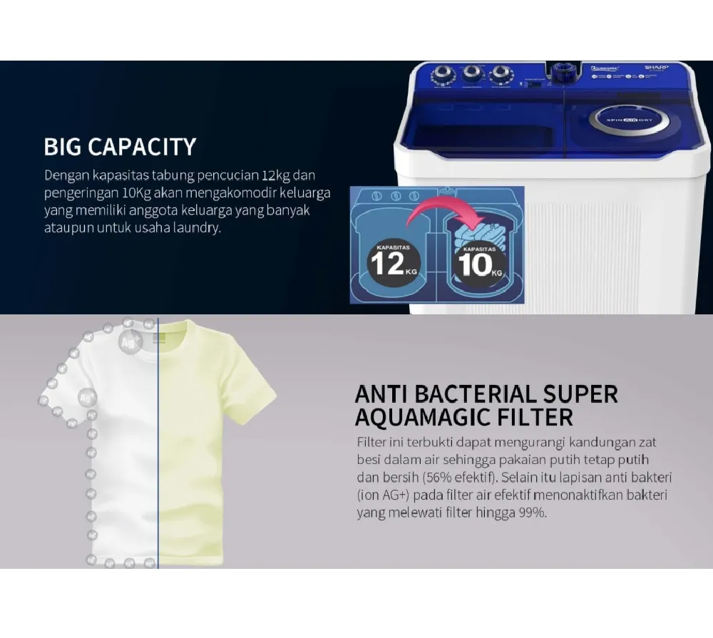 MESIN CUCI 2 TABUNG SHARP ES-T1490WA 14 KG